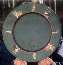 Original, handpainted wooden plate, signed "Fran '99". 14" across, 3/4" deep.. |